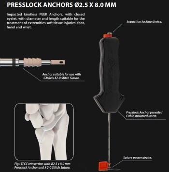 PressLock 2.5 mm by GMREIS is a small-diameter fixation system designed to provide precise and reliable stabilization in orthopedic procedures, particularly for TFCC (Triangular Fibrocartilage Complex)–related indications and other small bone or soft-tissue fixation applications. The PressLock system allows for controlled, press-fit insertion, delivering consistent fixation strength while minimizing disruption to surrounding tissues. Its low-profile design supports stable repair and healing without prominent hardware, reducing the need for secondary removal procedures. PressLock 2.5 mm offers surgeons a dependable solution for delicate wrist anatomy, supporting anatomical restoration, functional recovery, and improved patient outcomes.